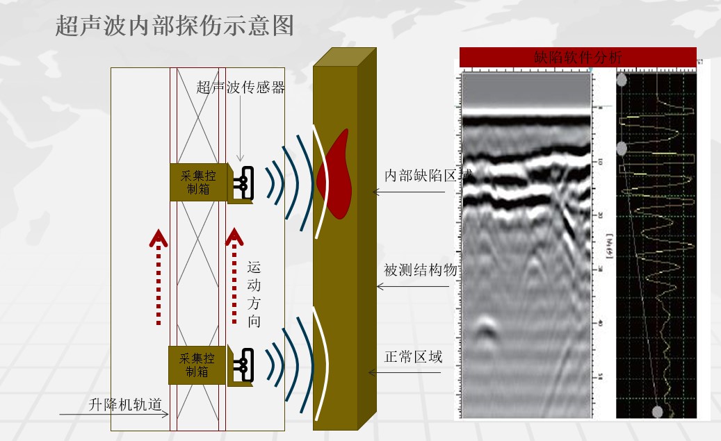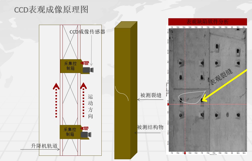 塔內(nèi)升降機(jī)可選配智能化檢測裝置,實(shí)現(xiàn)遠(yuǎn)程操作對主塔內(nèi)砼結(jié)構(gòu)、錨索區(qū)等位置進(jìn)行全自動(dòng)掃描檢測,自動(dòng)分析病害位置,大大降低了人工勞動(dòng)強(qiáng)度,減少了人為因素檢測不到位或不實(shí)的情況,實(shí)現(xiàn)橋塔后期智能化檢測養(yǎng)護(hù)作業(yè)。