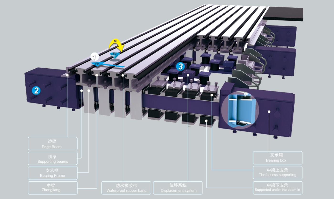 型鋼伸縮裝置是在總結(jié)國(guó)內(nèi)外各種大位移伸縮裝置特點(diǎn)的基礎(chǔ)上,針對(duì)重載高密度交通的狀況成功研發(fā)出的一種新型大位移伸縮裝置。