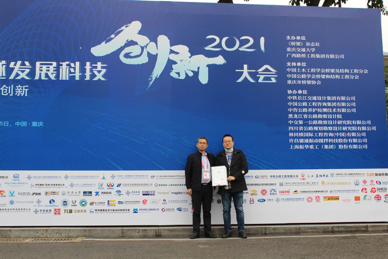 我司董事長(zhǎng)在2021橋隧產(chǎn)業(yè)技術(shù)及產(chǎn)品科技創(chuàng)新成果發(fā)布會(huì)暨第六屆橋隧技術(shù)及產(chǎn)品創(chuàng)新大賽發(fā)表演講,主題為“特大橋橋塔塔內(nèi)智能化檢養(yǎng)升降機(jī)”。